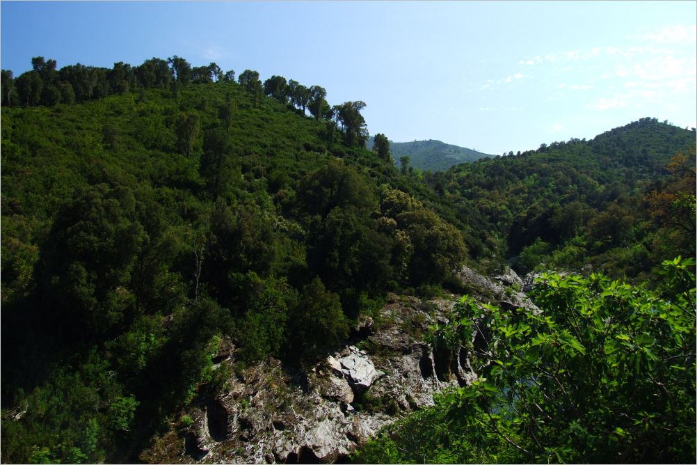 Valle-di-Rostino - w dole jest pokaźnych rozmiarów rzeka.